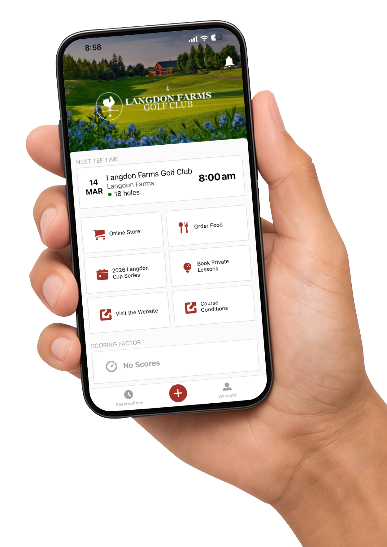 Our beautiful clubhouse resembles a big red barn. It can accommodate up to 120 guests and is available to reserve during our winter months which makes it the perfect space for your holiday party. The Patio features beautifully stained wood tables to seat 80 and features an expansive view of the golf course. Additional guests can be seated at rounds on the patio lawn.